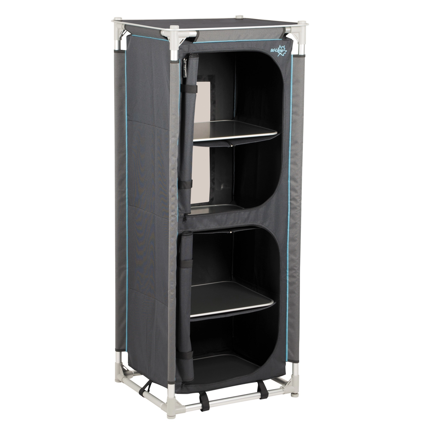 Deze luxe legkast is van het vooraanstaande kampeermerk Bo-Camp. De kast beschikt over 4 stevige legplanken en 2 zijvakken. Ook is hij voorzien van een luxe 2-tone 600D polyester hoes en een oplegblad. De verstelbare poten zijn afzonderlijk van elkaar te verstellen. Hierdoor staat de kast stabiel op elke ondergrond. De kast wordt geleverd in een draagtas, handig te vervoeren dus. Perfect voor op vakantie!